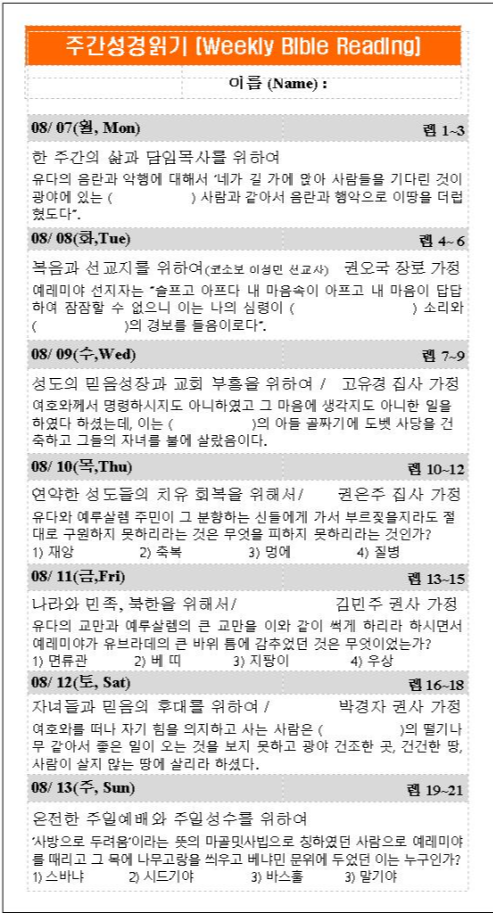 | 주간성경읽기 8월13일 (0) | 2023.08.31 |