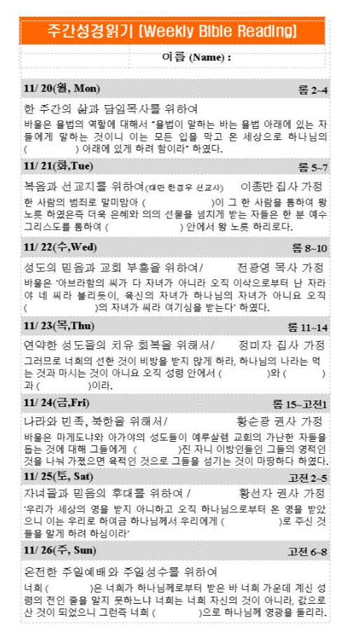 주간성경읽기 11월 19일