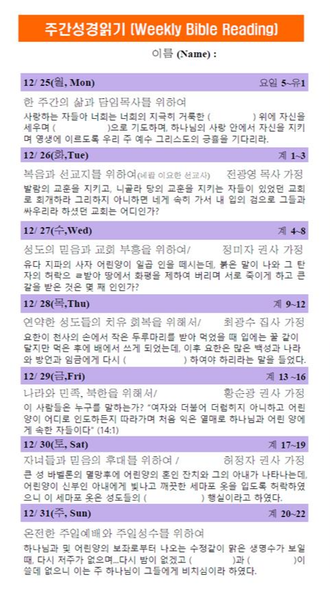 주간성경읽기 12월 24일