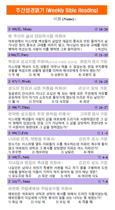 주간성경읽기 2월 4일