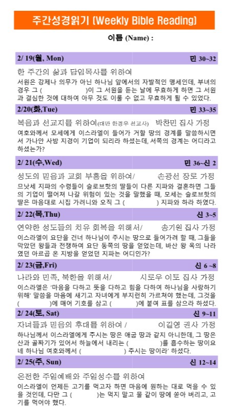 주간성경읽기, 교회소식 2월 25일  (0) 2024.02.25