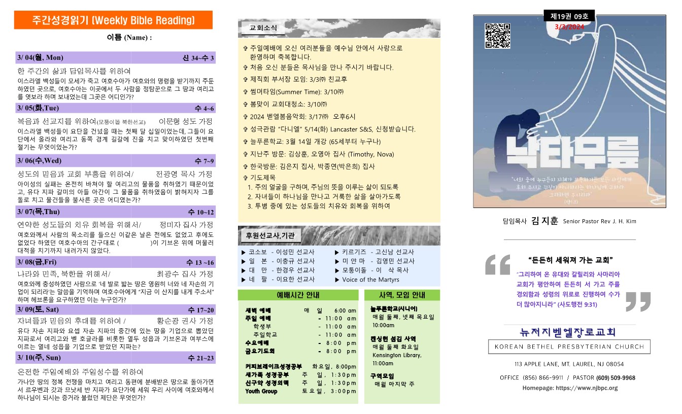 | 주간성경읽기, 교회소식 3월 10일 (0) | 2024.03.09 |