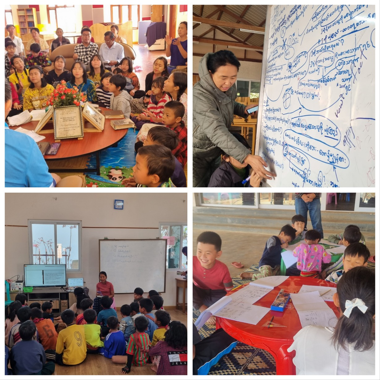 이 난리 중에도 현재 그유나 공동체는 주변 빠오 동네 아이들과 함께하는 방학 캠프가 한창입니다. 3 월 초부터 시작된 이 캠프는, 3 개월 방학동안 주변 빠오족 마을 아이들을 교육하는 프로그램입니다. 금번 캠프가 아이들을 통해 가족의 기쁨과 소망이 되는 것같아 반나절만(8am-12pm) 진행하기로 했던 프로그램을 하루 종일(8am – 4pm) 캠프로 늘여서 매 주 월요일부터 금요일까지 선생님들과 함께 진행하고 있습니다.