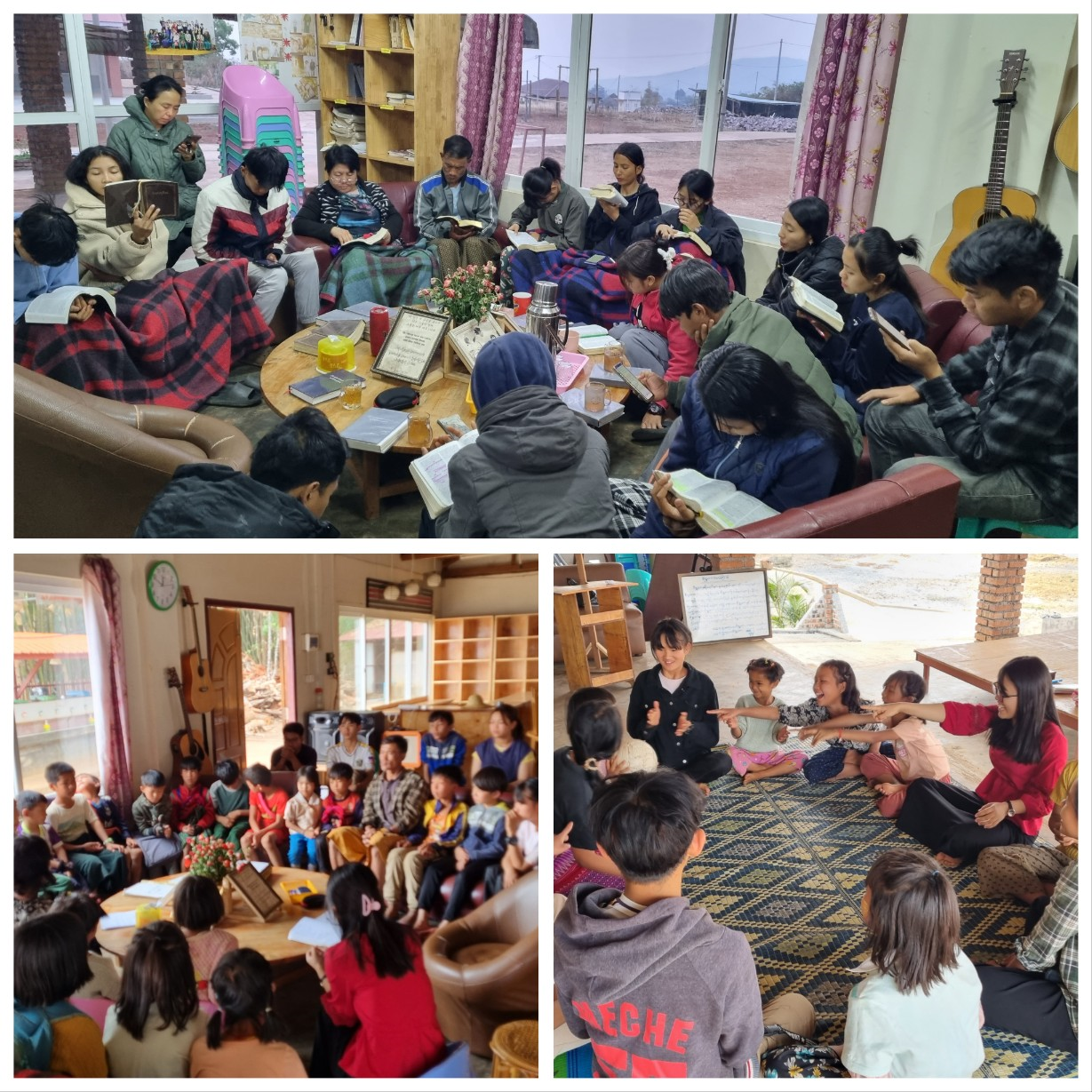 지금도 샨 민족 해방군과 반군이 힘을 합쳐 현 군부 독재에 대항하며 따웅지 동남부 반경 100 킬로 밖에는 격전이 벌어지고 있습니다. 그유나 공동체에서 1 시간 정도 떨어진 동남부 지역(내전지역)으로 들어가는 이동과 출입, 그리고 통신이 통제가 되어 모두가 어려움을 겪고 있습니다. 간간히 반군 쪽에서 저희 따웅지 주변 마을에도 전쟁이 곧 일어날 것이니 “떠나라” 는 경고와 소문이 몇차례 돌고 있습니다. 만약, 현 상황에서 만약 호뽕까지(따웅지에서 1 시간거리) 내전이 확전이 될 경우, 그유나 식구들은 함께 따웅지 시내 안으로 피신해 들어갈 생각입니다. 이 격전은 4 월 말까지가 고비가 될 것으로 보입니다. 더 이상 전쟁이 더 확전이 되지 않기를 바랍니다. 자국민을 담보로 자기들만의 이익 집단이 되어버린 현 군부와 반군들의 무지함과 악함 가운데에서 국민들을 건져주시기를 바랍니다.