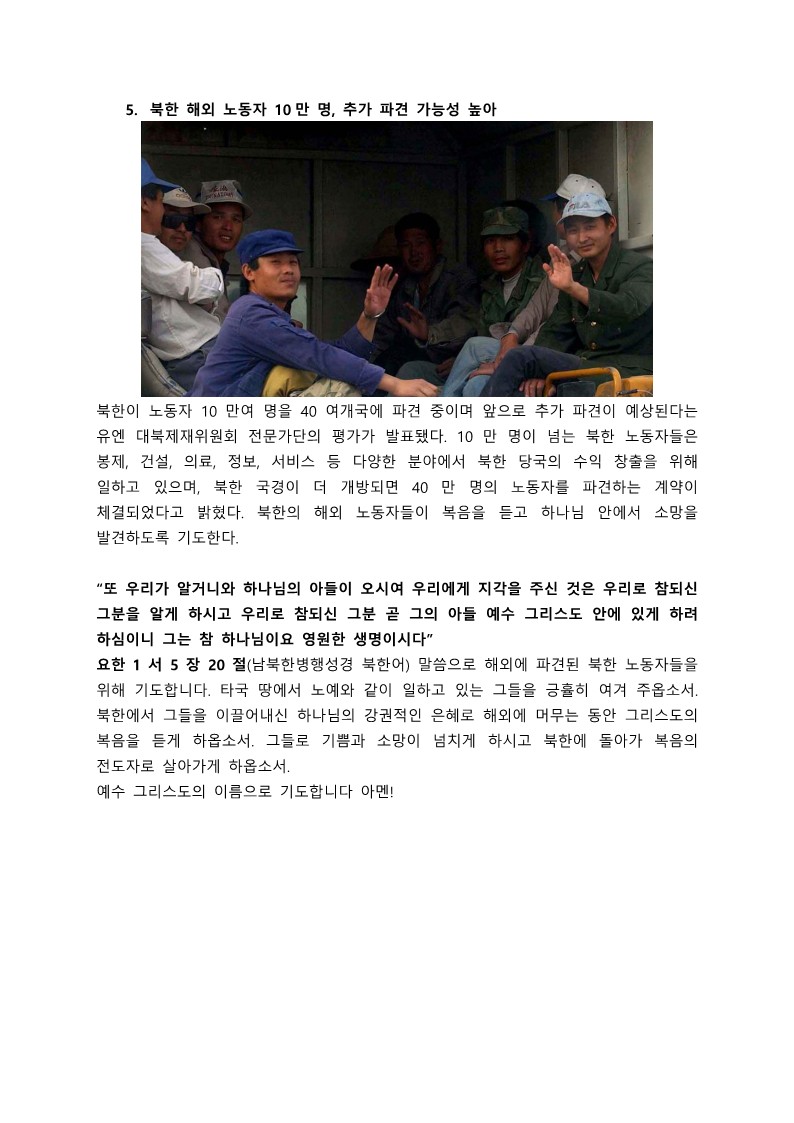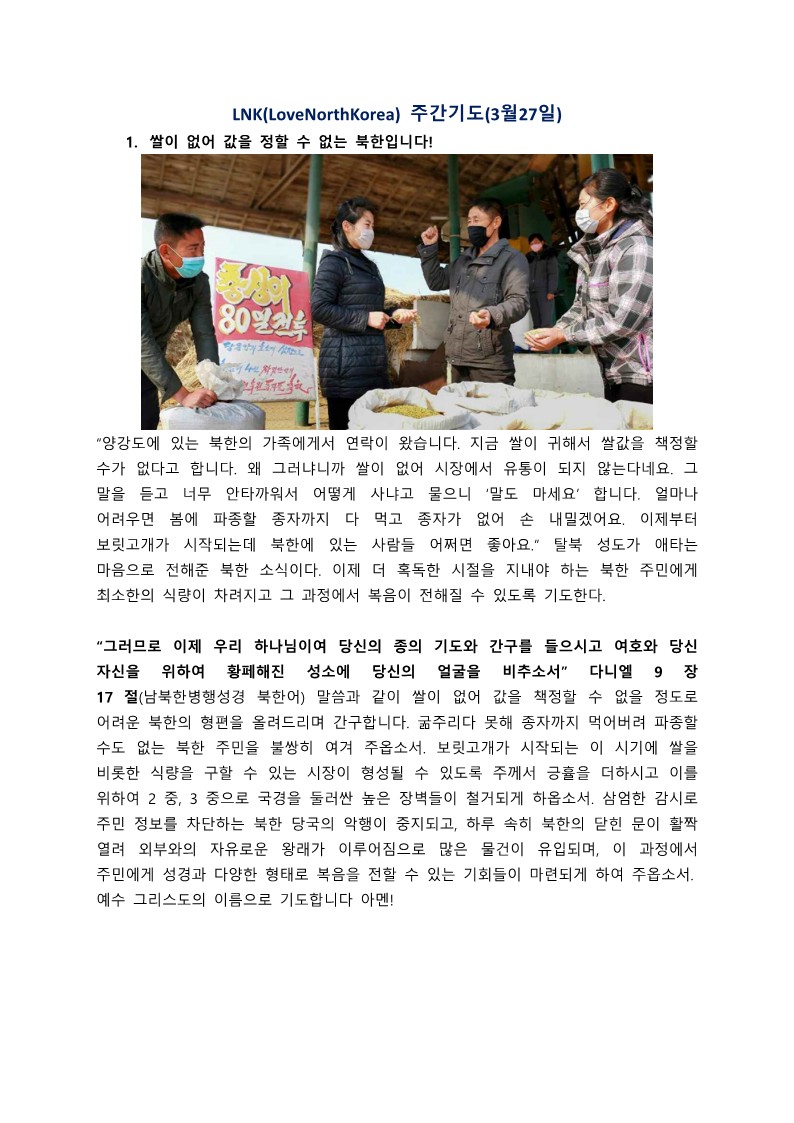 북한 사랑 주간 기도제목