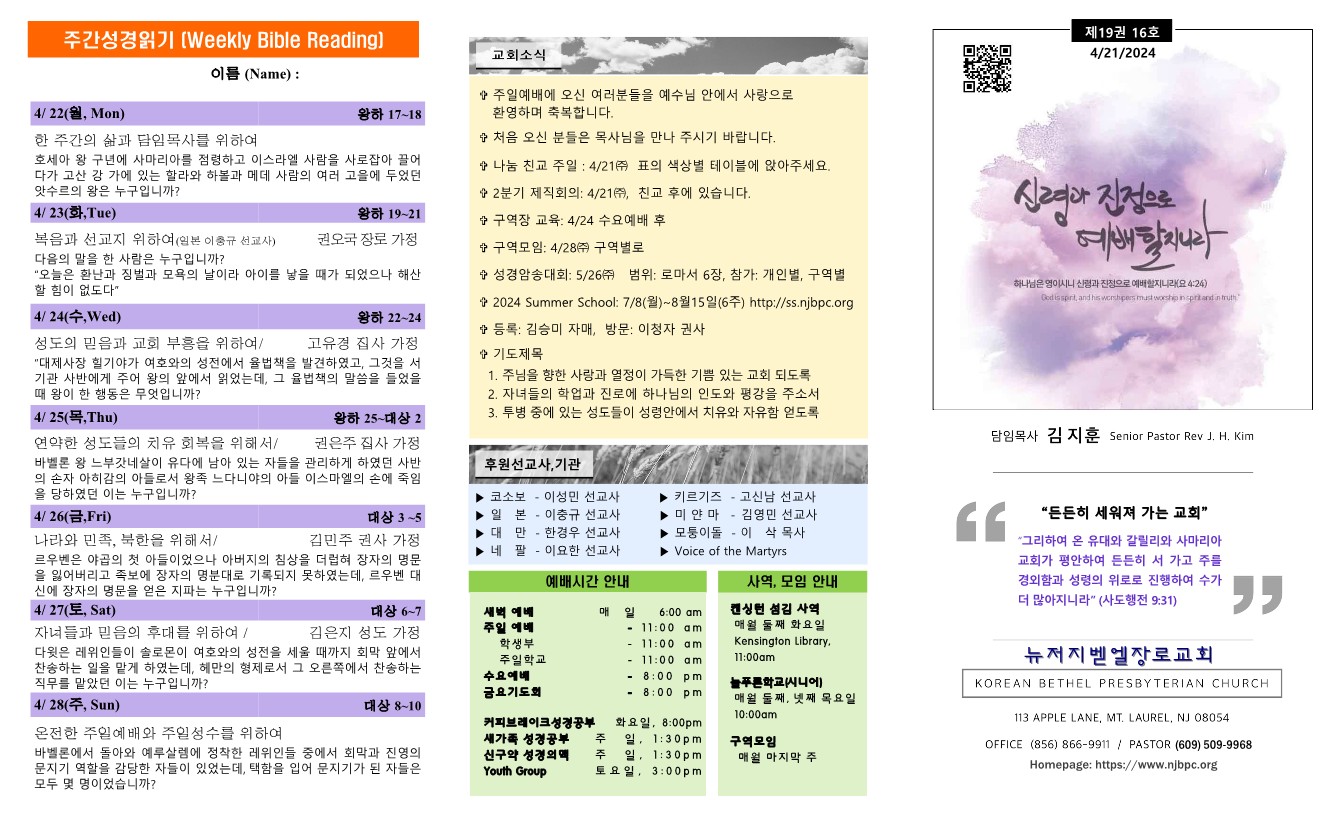 | 주간성경읽기, 교회 소식 4월 14일 (0) | 2024.04.13 |