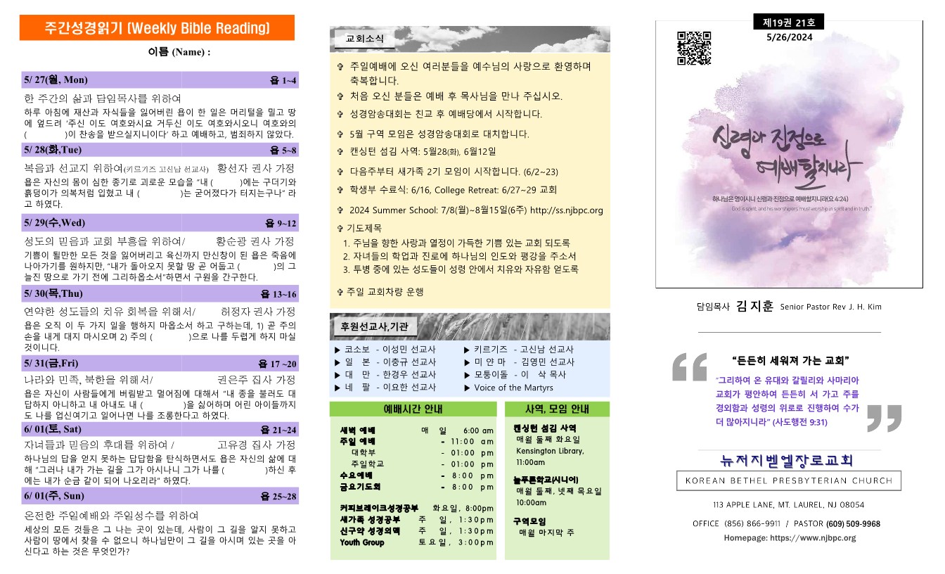 | 주간성경읽기, 교회소식 5월 19일 (0) | 2024.05.18 |