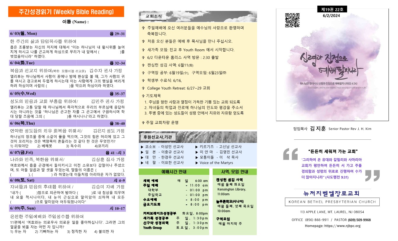 | 주간성경읽기, 교회소식 6월 9일 (0) | 2024.06.08 |