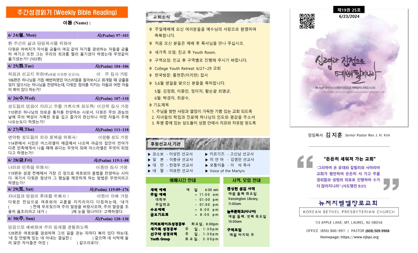 | 주간성경읽기, 교회소식 6월 9일 (0) | 2024.06.08 |