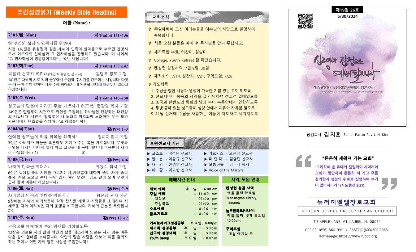 주간성경읽기, 교회소식 6월 30일