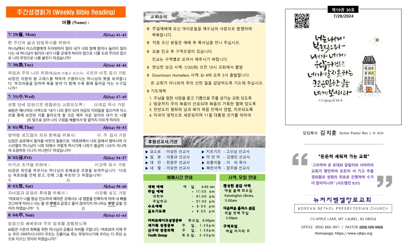 | 주간성경읽기, 교회소식 7월 21일 (0) | 2024.07.20 |