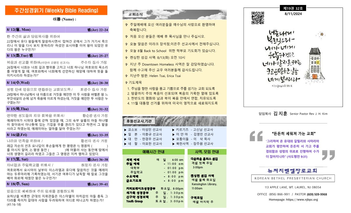 | 주간성경읽기, 교회소식 8월 4일 (0) | 2024.08.04 |