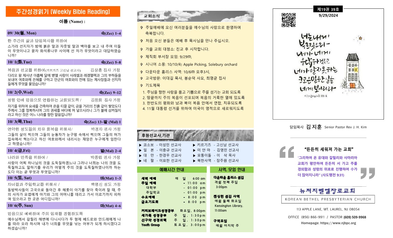 | 주간성경읽기, 교회소식 10월 27일 (0) | 2024.11.03 |