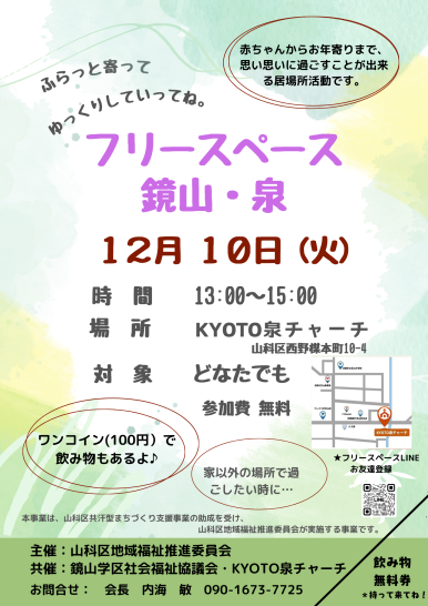 그리고, 사회복지협의회의 부탁으로 10월부터 프리스페이스(Free Space)가 교회당에서 시작되게 되었습니다. 고립되어 있는 지역민들에게 잠시 쉬어가며 다른 이들과 교류할 수 있는 장소를 제공하는 활동입니다. 사회복지협의회에서 저희 지역 내에는 다른 장소가 도저히 없으니 이즈미교회에 부탁한다는 말씀을 듣고, 사회복지협의회와 공동으로 운영하게 되었습니다. 새로운 전도의 기회가 열릴 수 있기를 기도 부탁드립니다. ​