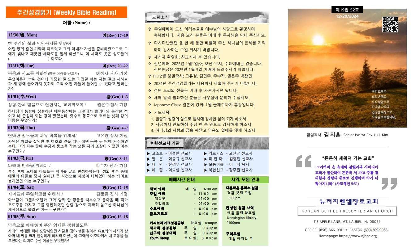 | 주간성경읽기, 교회소식 1월 12일 (0) | 2025.01.11 |