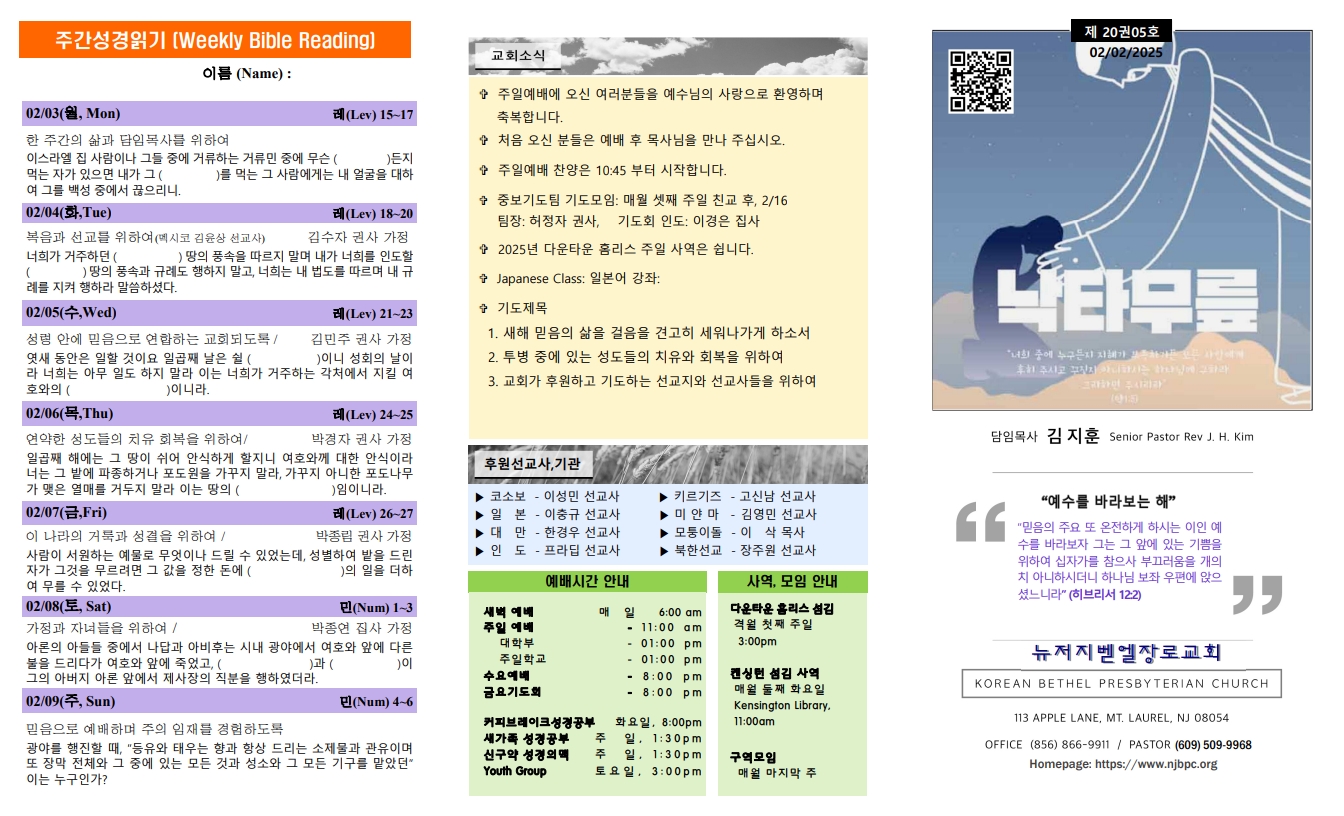 | 주간성경읽기, 교회소식 2월 9일 (0) | 2025.02.09 |