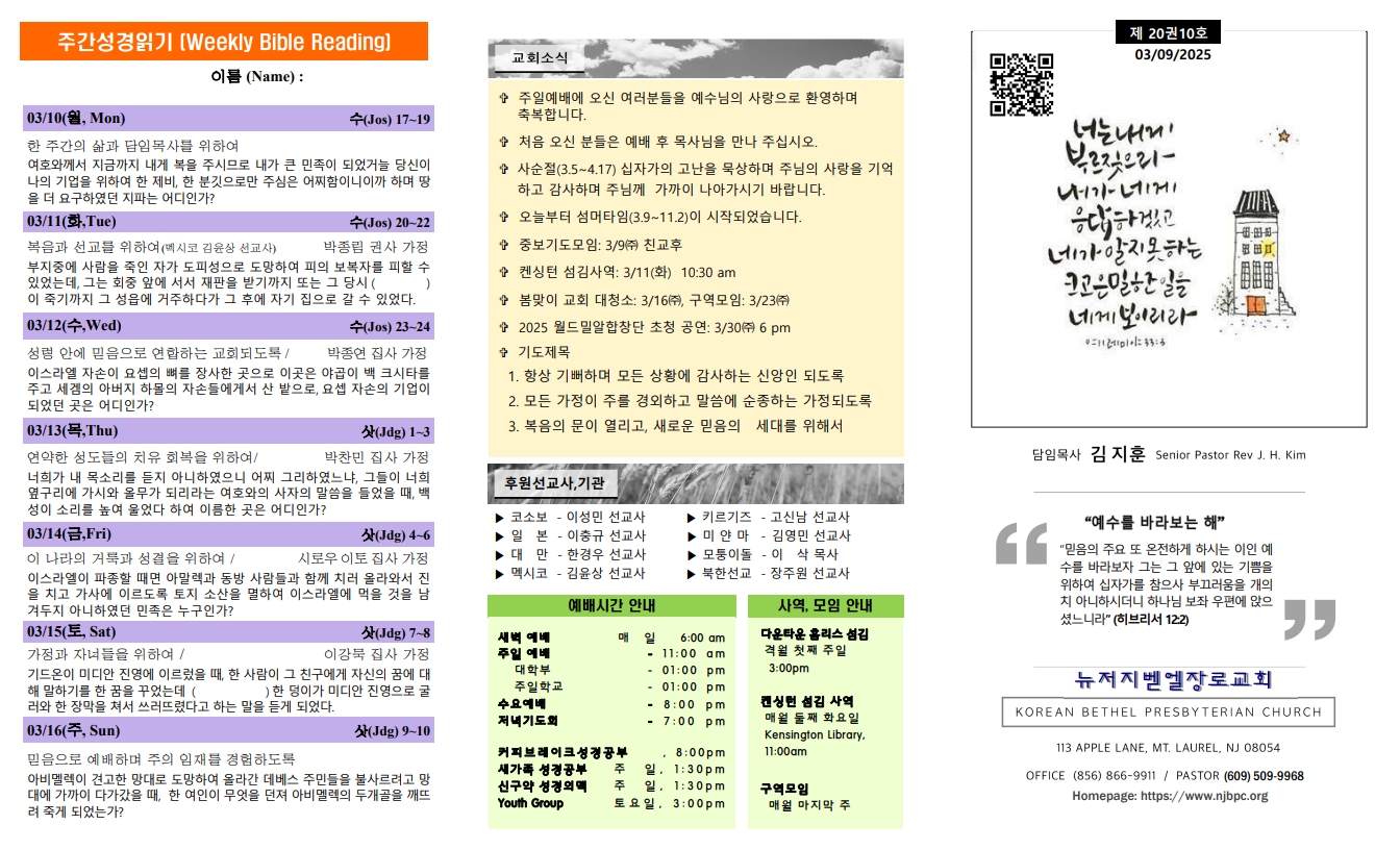 | 주간성경읽기, 교회소식 3월 2일 (0) | 2025.03.02 |