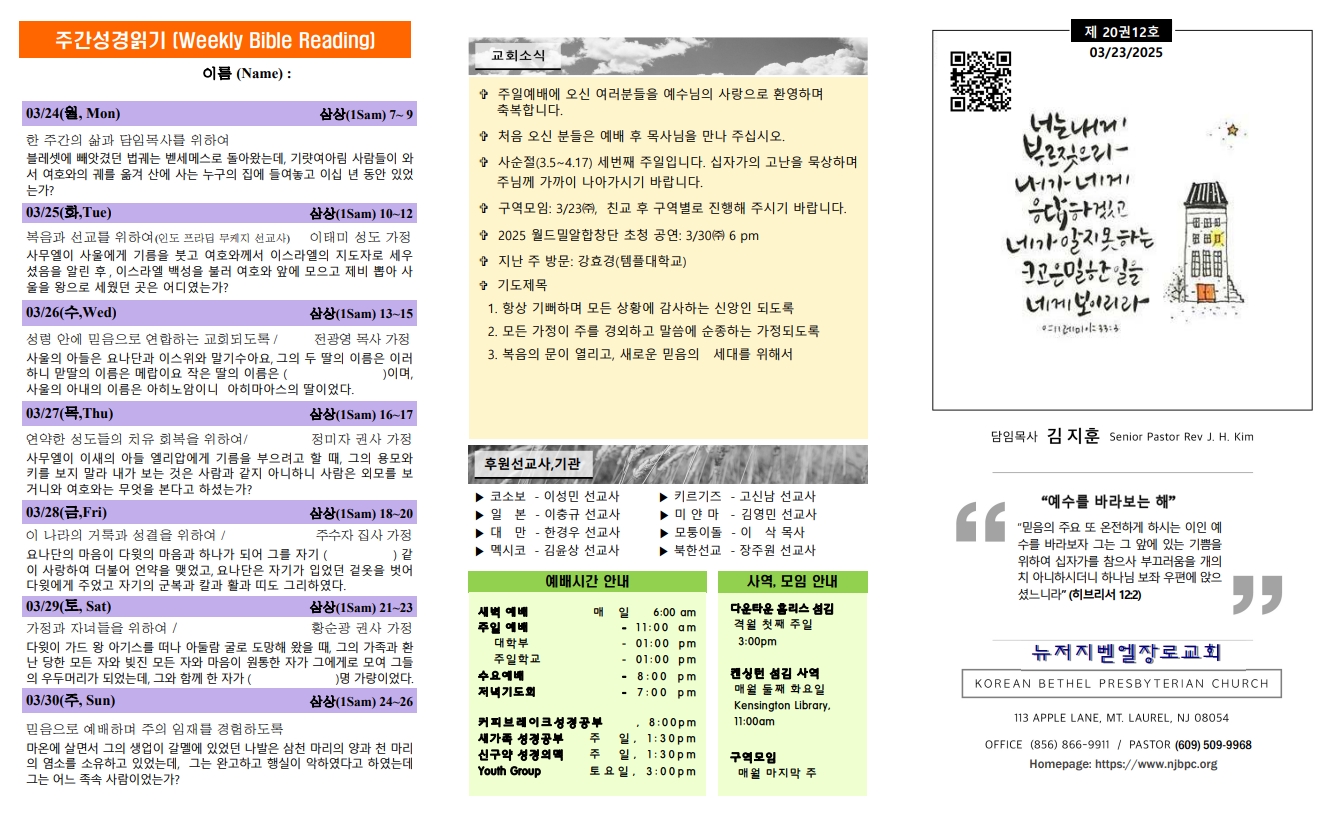 | 주간성경읽기, 교회소식 3월 30일 (0) | 2025.03.29 |