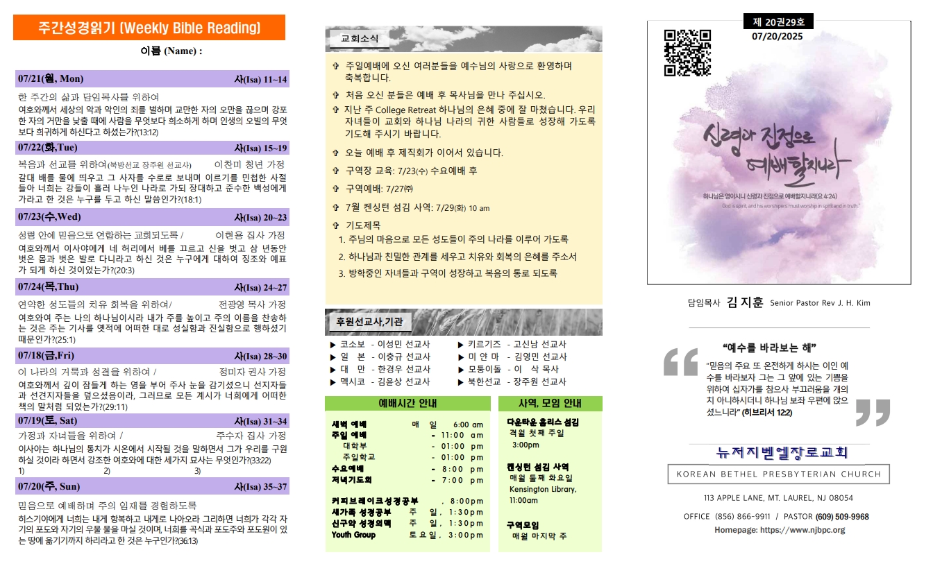 | 주간성경읽기, 교회소식 7월 13일 (0) | 2025.07.12 |