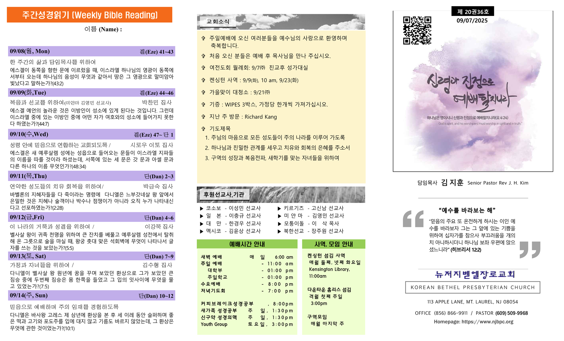 | 주간성경읽기, 교회소식 9월 14일 (0) | 2025.09.14 |