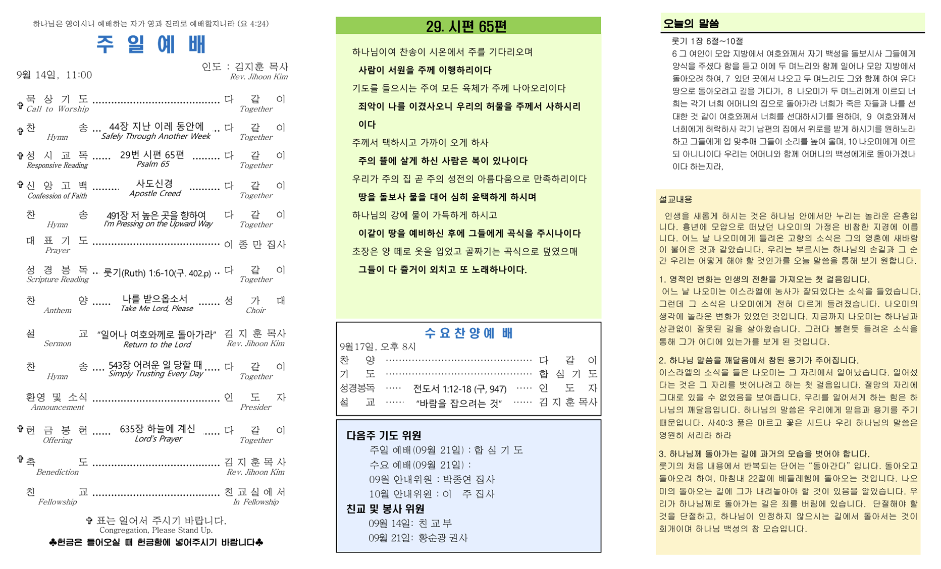 온라인 주보 9월 14일