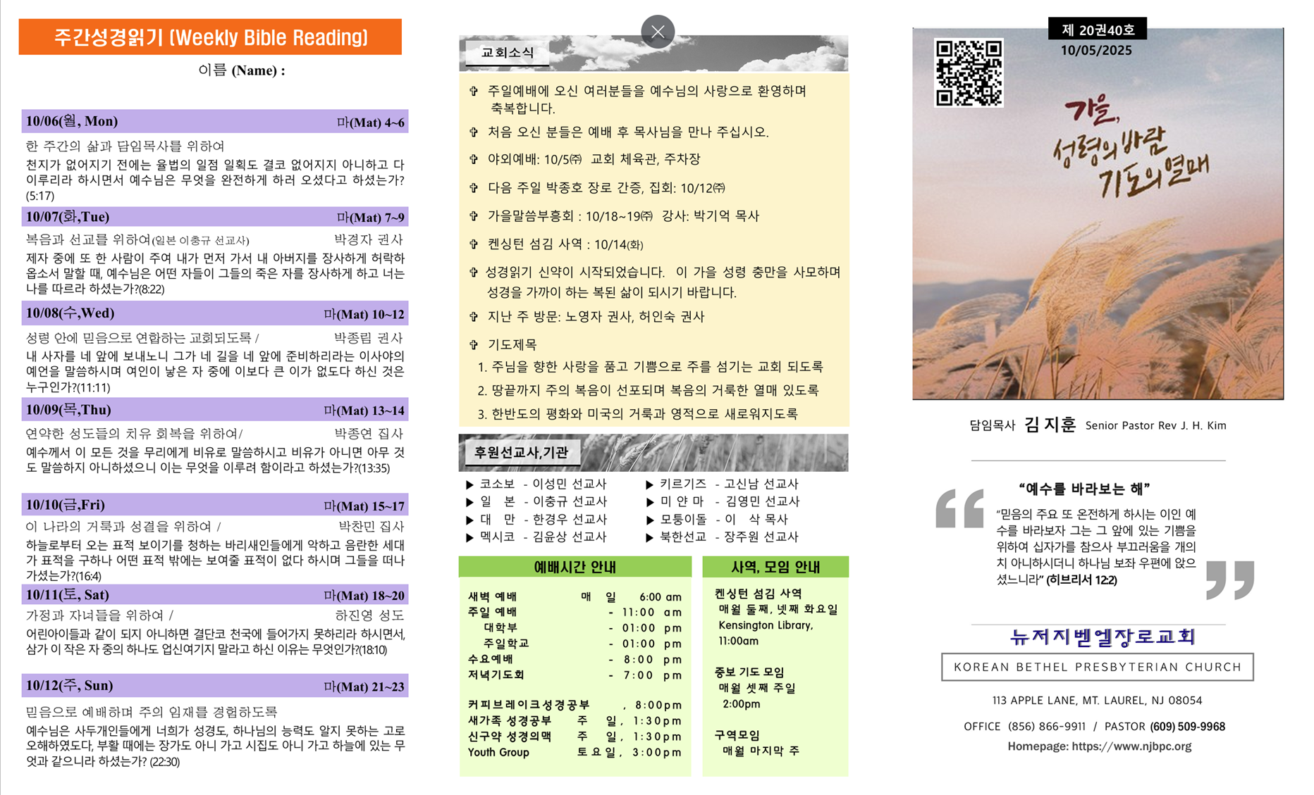 | 주간성경읽기, 교회소식 10월 19일 (0) | 2025.10.18 |