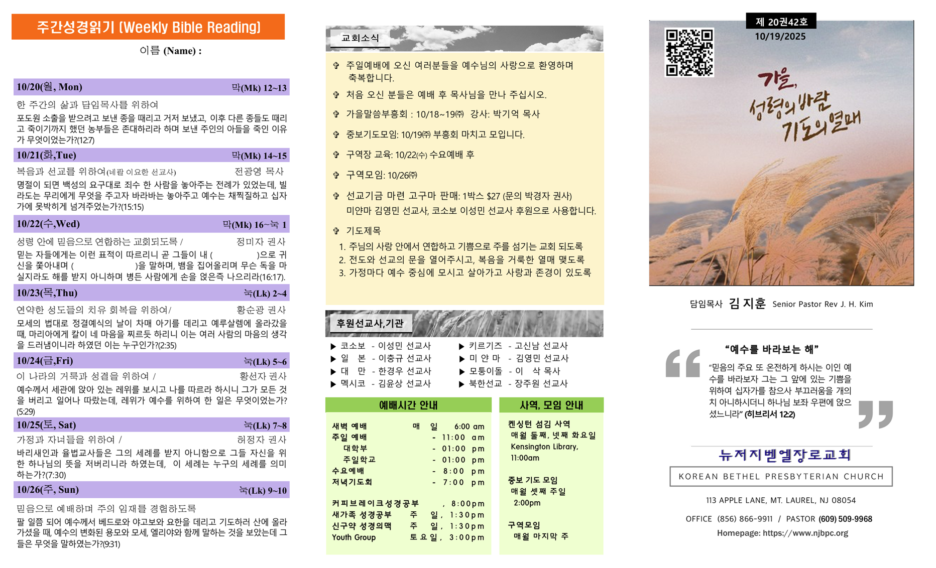 | 주간성경읽기, 교회소식 11월 2일 (0) | 2025.11.02 |