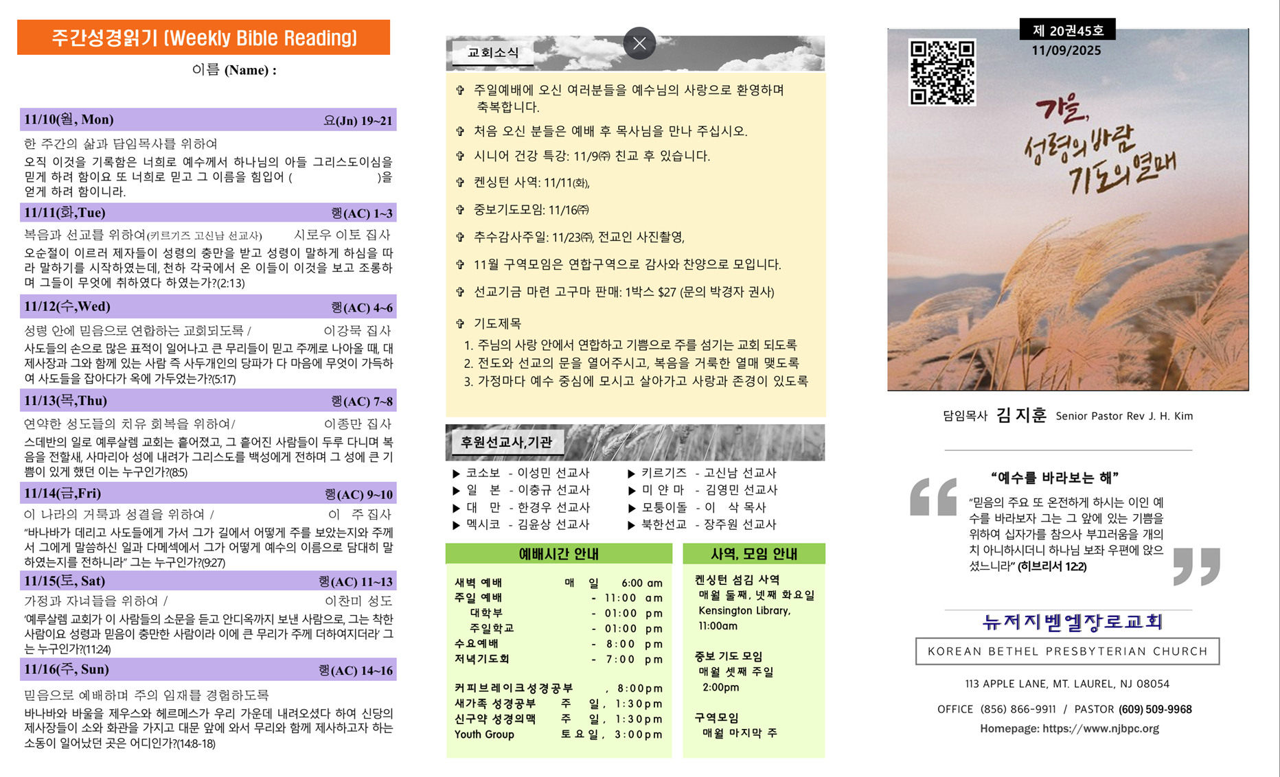 | 주간성경읽기, 교회소식 11월 2일 (0) | 2025.11.02 |