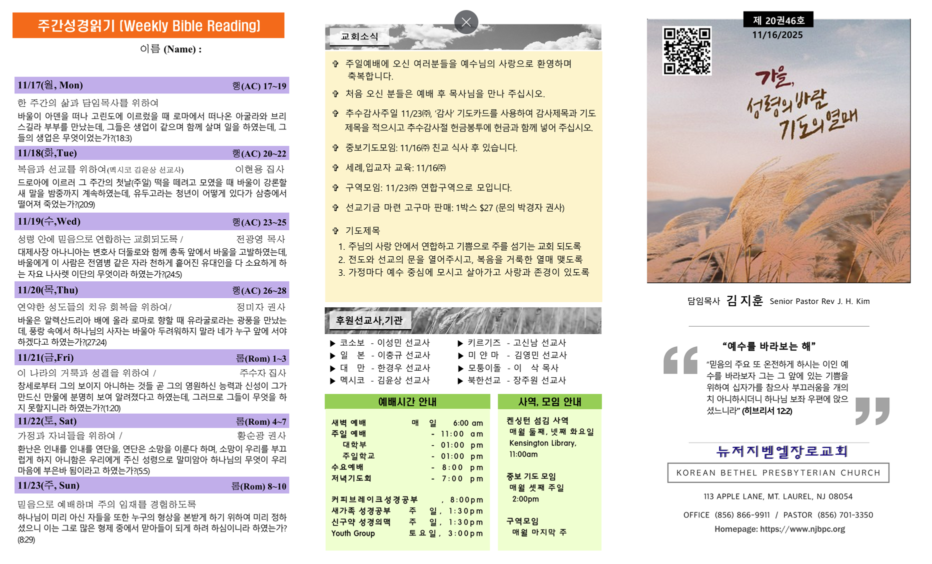 | 주간성경읽기, 교회소식 11월 2일 (0) | 2025.11.02 |