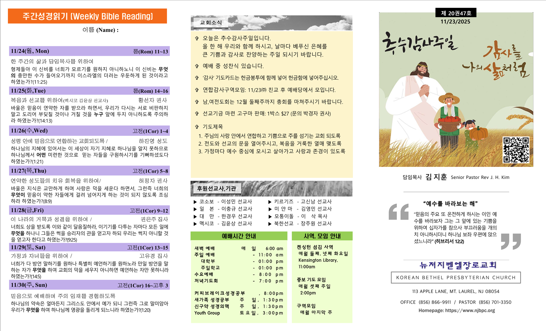 | 주간성경읽기, 교회소식 11월 2일 (0) | 2025.11.02 |