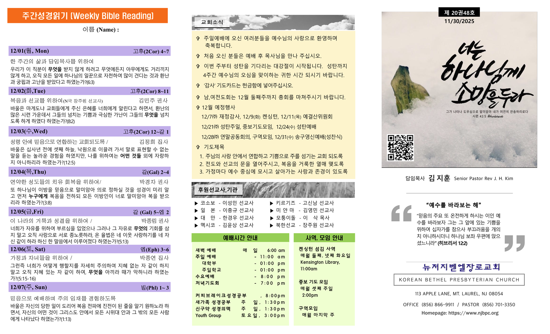 | 주간성경읽기, 교회소식 12월 7일 (0) | 2025.12.07 |