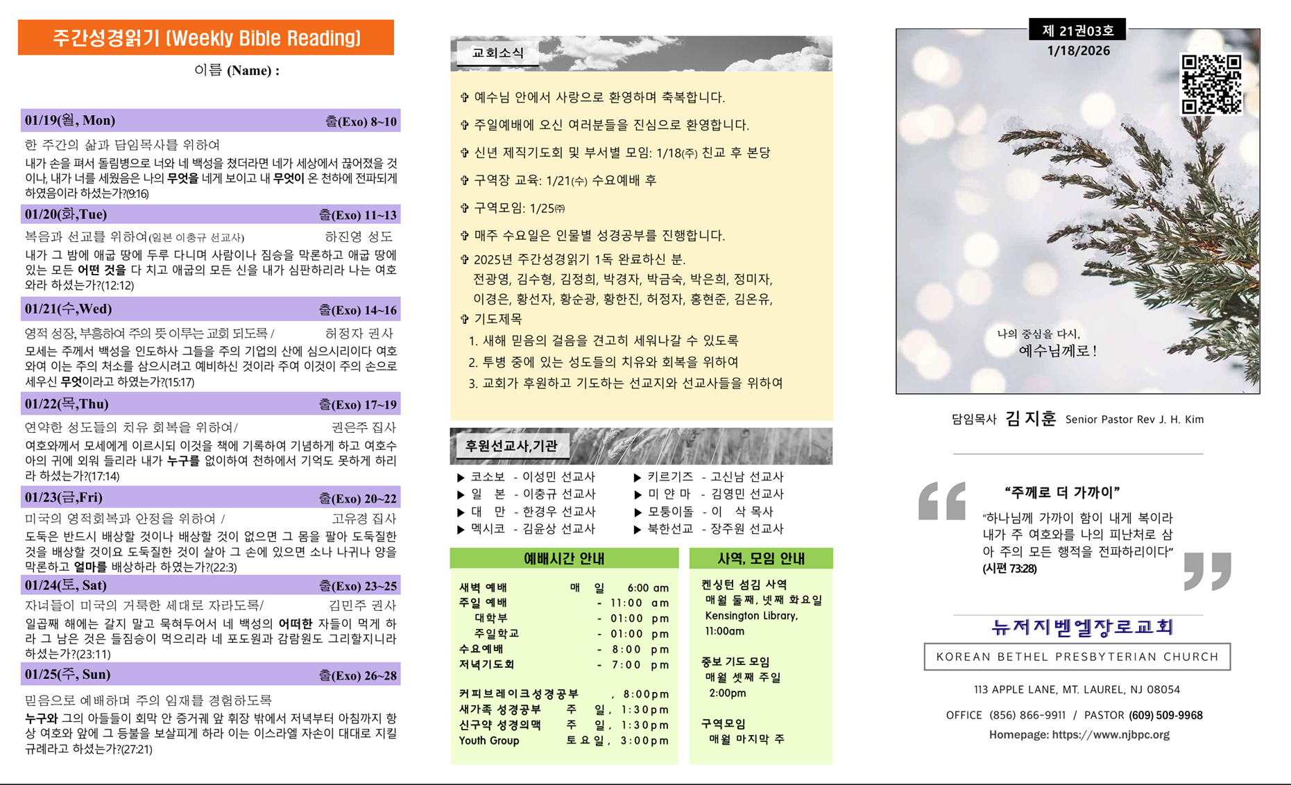 | 주간성경읽기, 교회소식 1월 11일 (0) | 2026.01.11 |