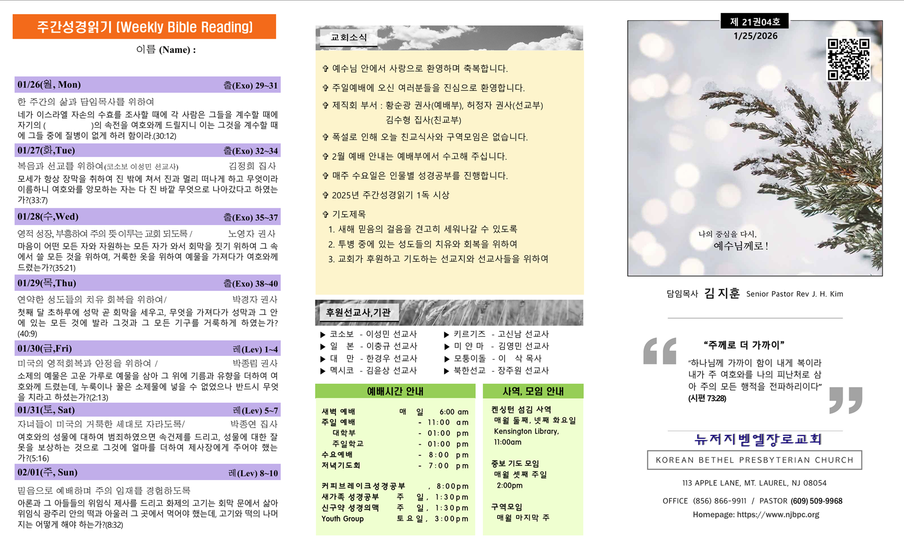| 주간성경읽기, 교회소식 1월 4일 (0) | 2026.01.04 |