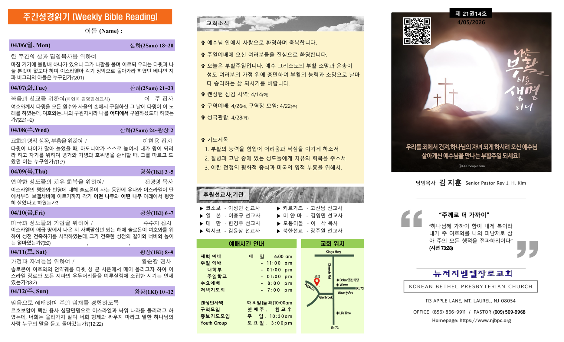 | 주간성경읽기, 교회소식 3월 29일 (0) | 2026.03.29 |