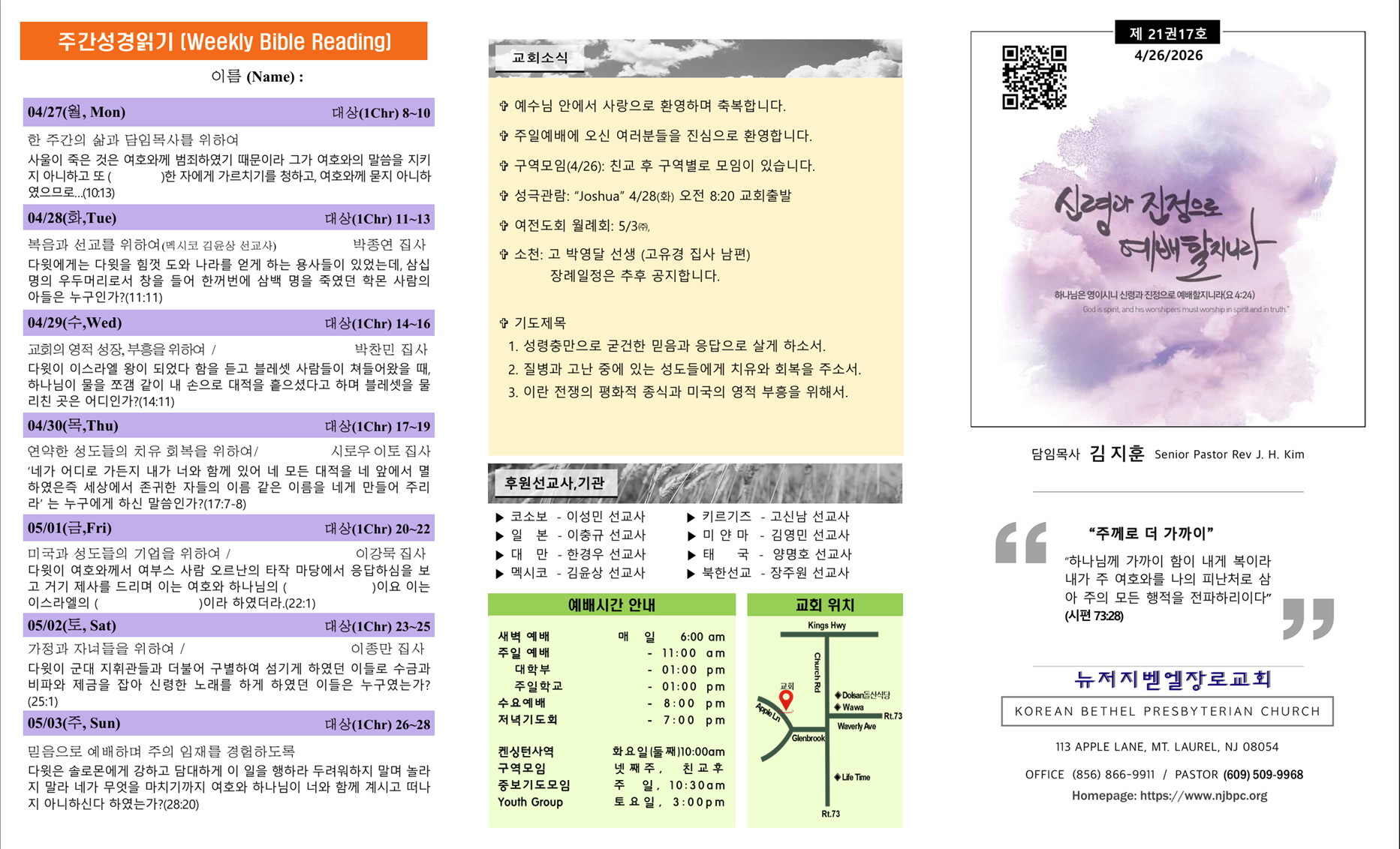 | 주간성경읽기, 교회소식 4월 19일 (0) | 2026.04.19 |