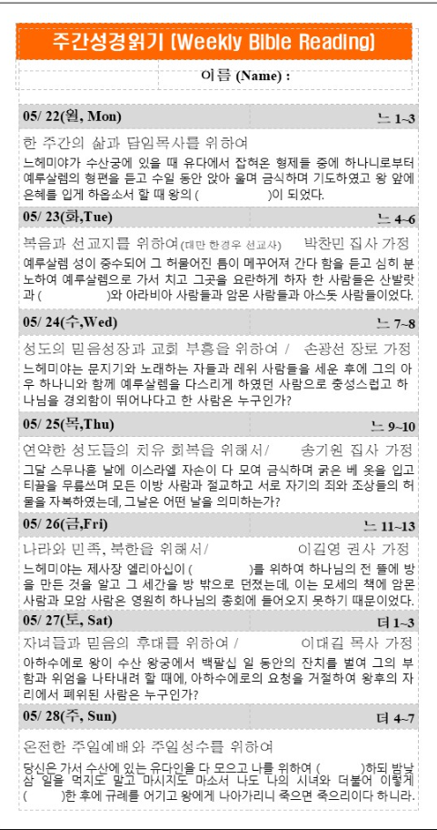 | 주간성경읽기 5월14일 (0) | 2023.05.31 |