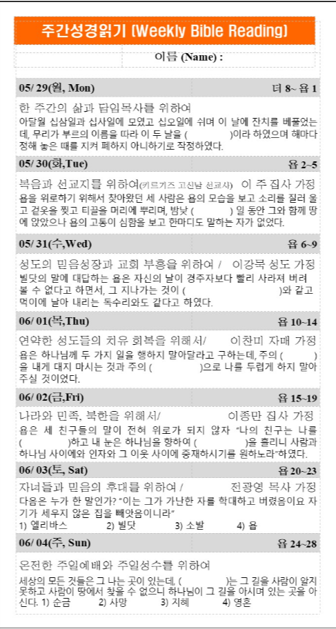 | 주간성경읽기 6월 4일 (0) | 2023.06.22 |