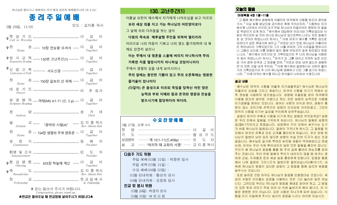 3월 24일 온라인 주보