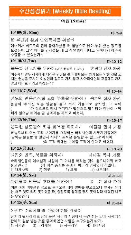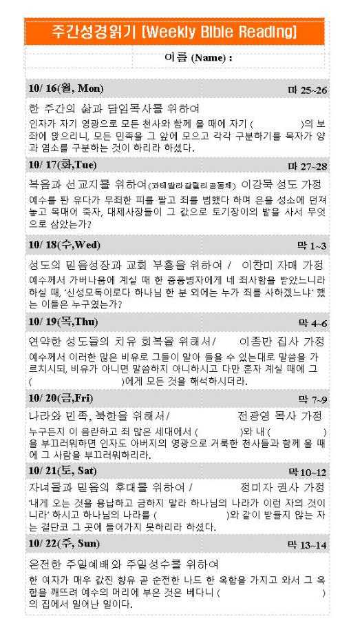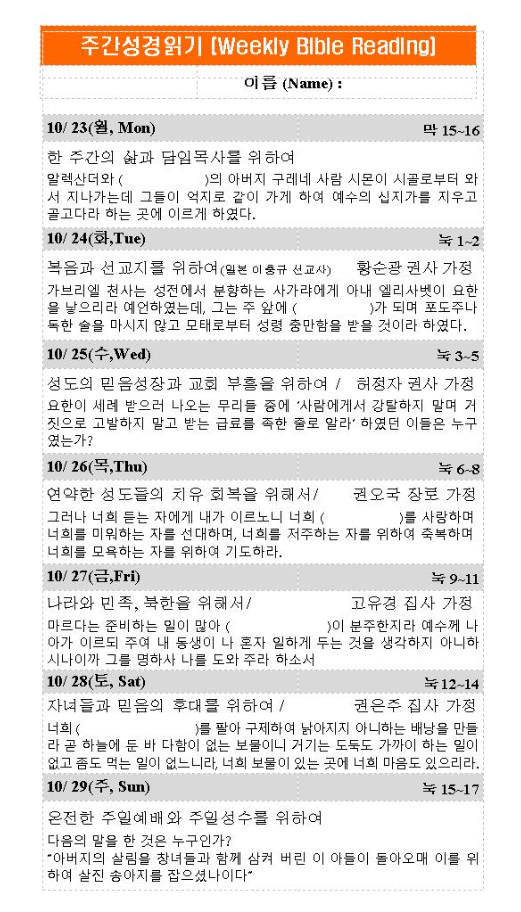 주간성경읽기 10월 15일