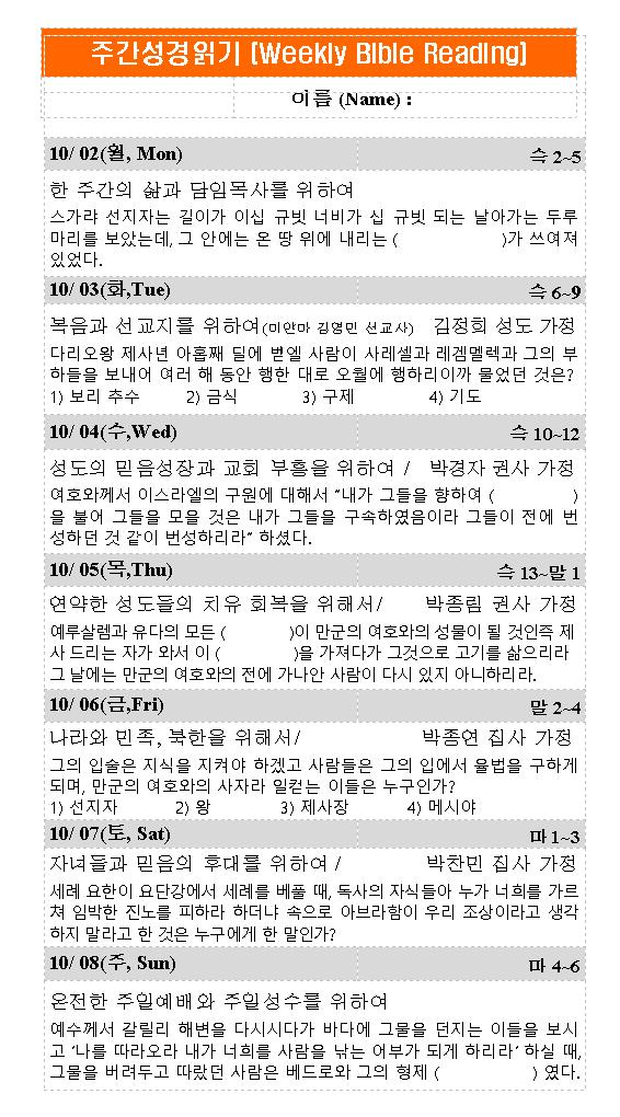 주간성경읽기 10월 1일