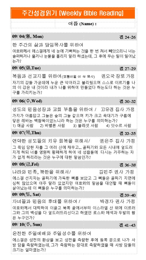 주간성경읽기 9월10일