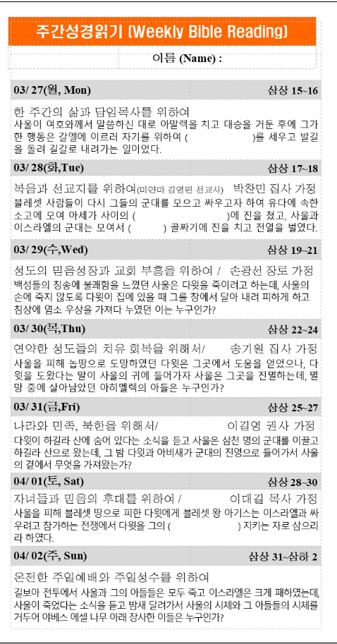 주간 성경 읽기 3월26일
